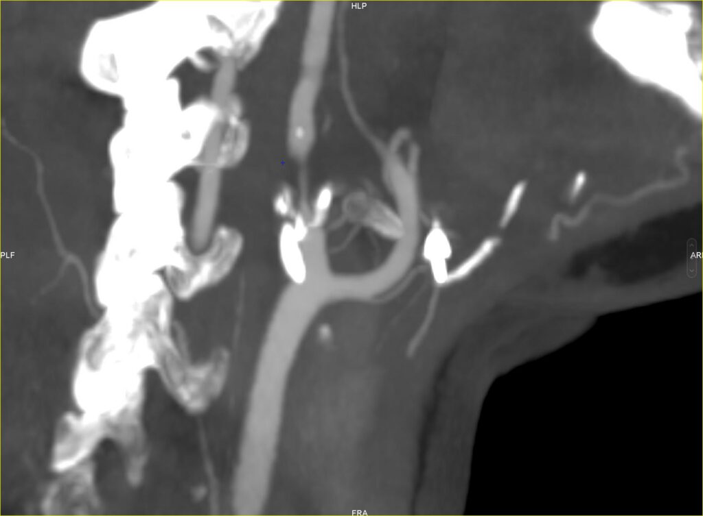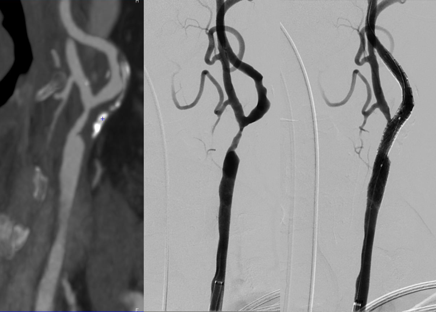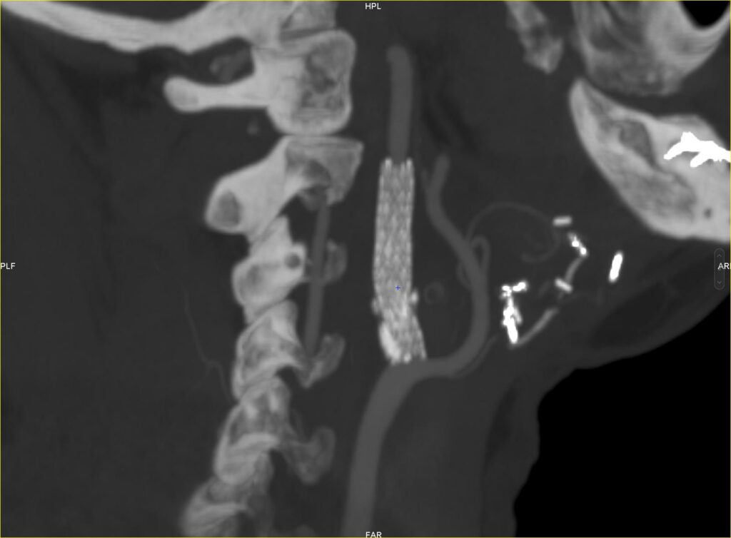 Le service de radiologie du GHBA de Vannes est le seul centre de radiologie interventionnelle à réaliser ce type d’intervention sur le département du Morbihan. Cette procédure est réalisée soit dans un contexte d’urgence lors de thrombectomie intracrânienne (AVC récent) soit de manière programmée lors de la découverte de sténose serrée à risque.