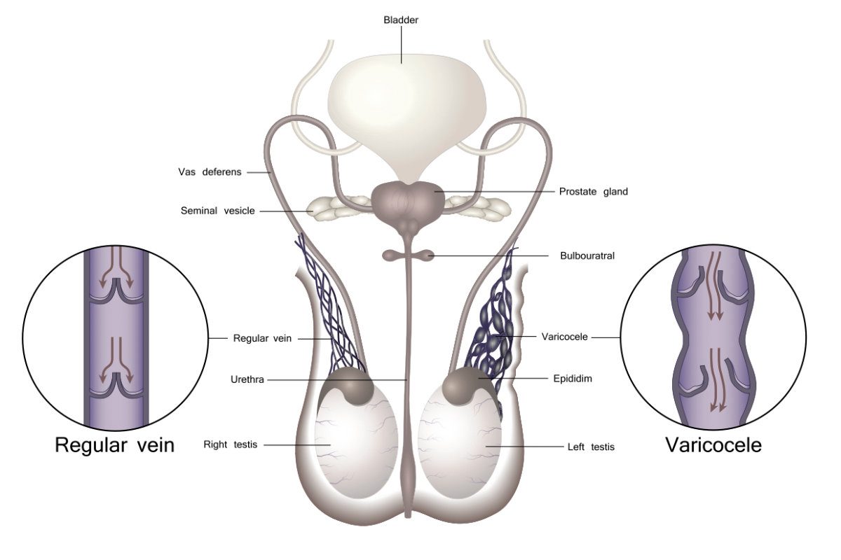 Cette pathologie bénigne est liée à une incontinence ou à une absence de valvules de la veine spermatique.